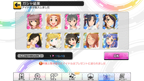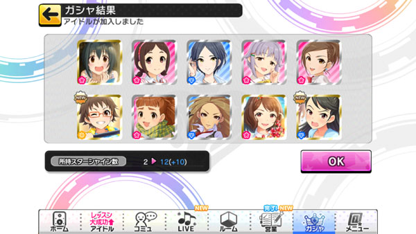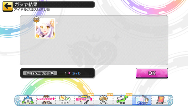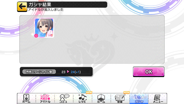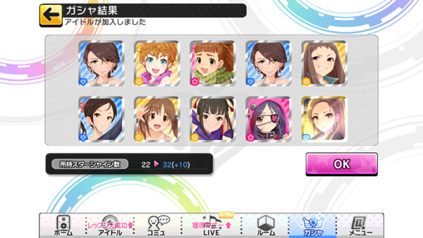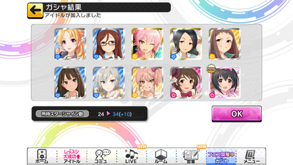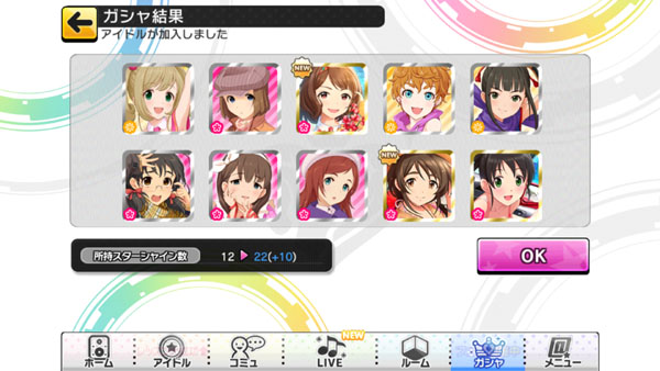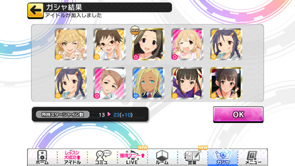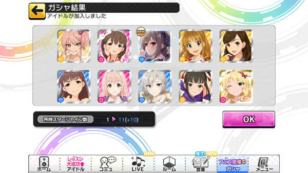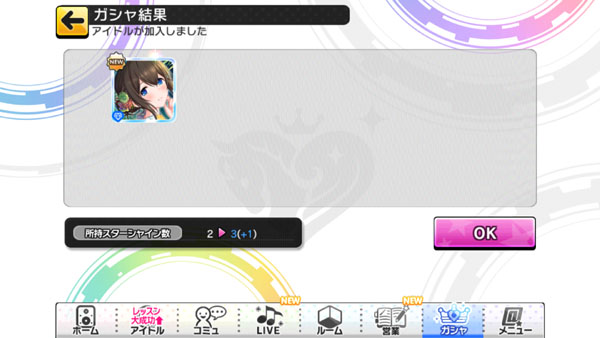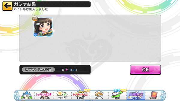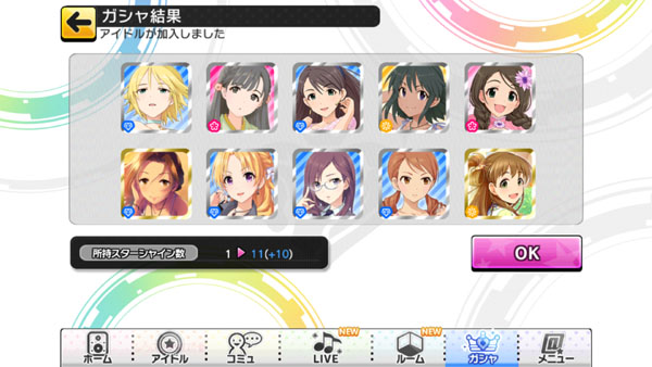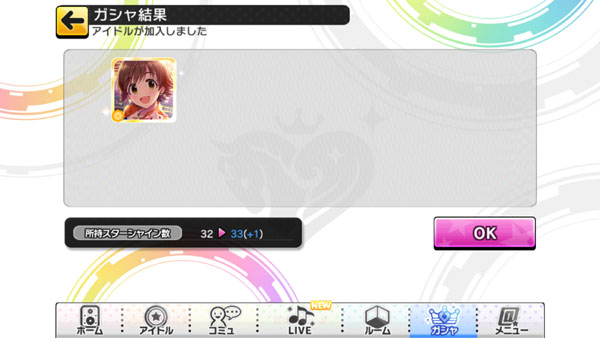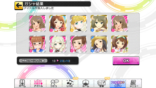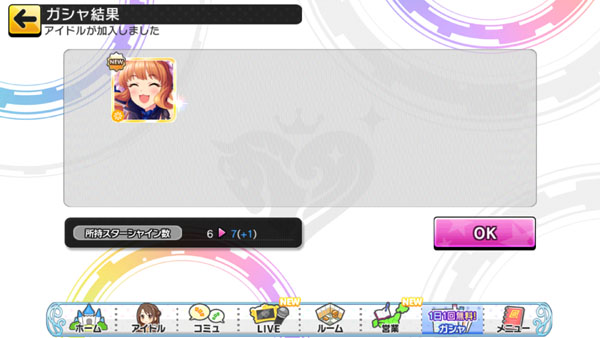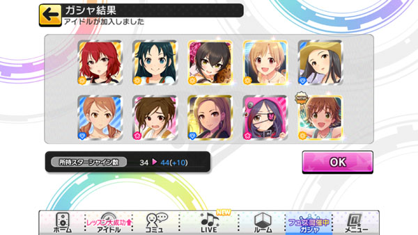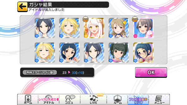 初日の10連〜最終日の無料&10連と30連目で乙倉ちゃん獲得。欲を言えば奈緒も欲しかった。